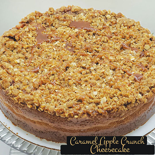 The fall flavors of caramel and apple in a sweet and creamy cheesecake.