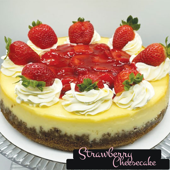 Sweet and creamy cheesecake topped with a delicious strawberry topping made with fresh strawberries and lemon juice.